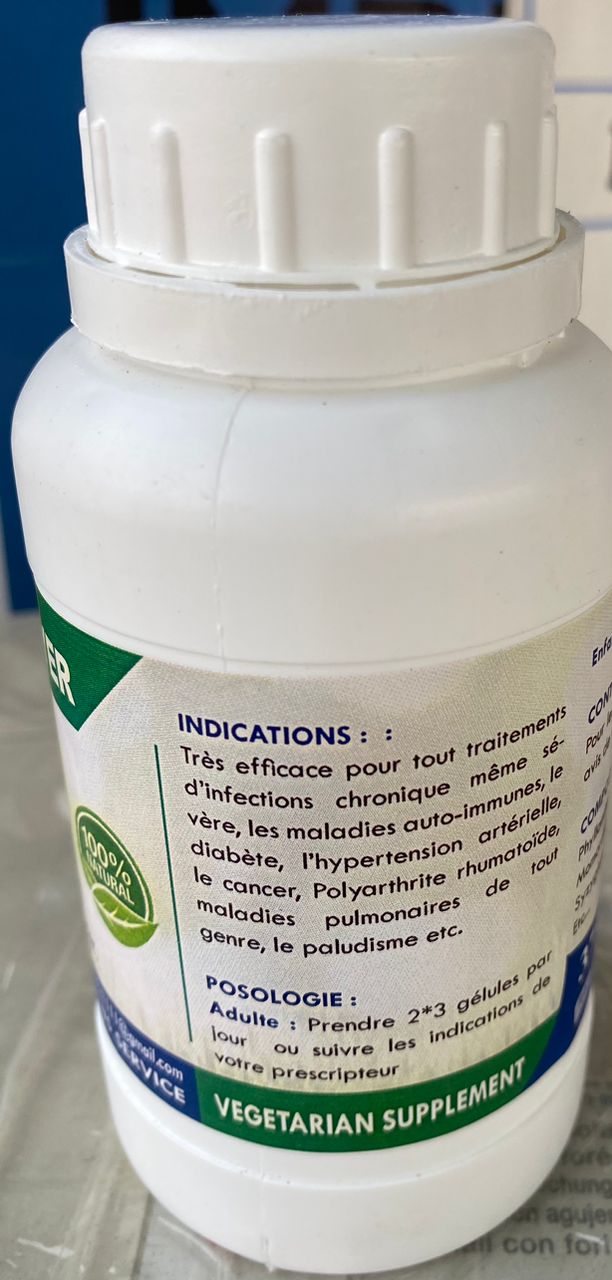Cet alicament est un destructeur des parasites, bactéries, virus, etc. Il aide à réguler la glycémie, à déboucher les artères et veines. Il traite efficacement le paludisme et bien d’autres.